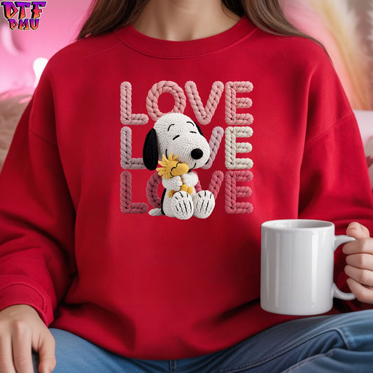 Snoopy LOVE Valentine's Day Faux Yarn/Crochet DTF Transfer Print Only.