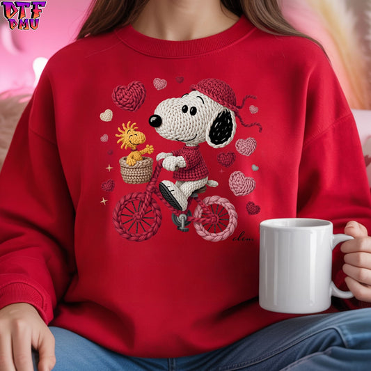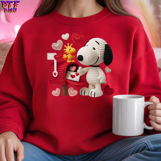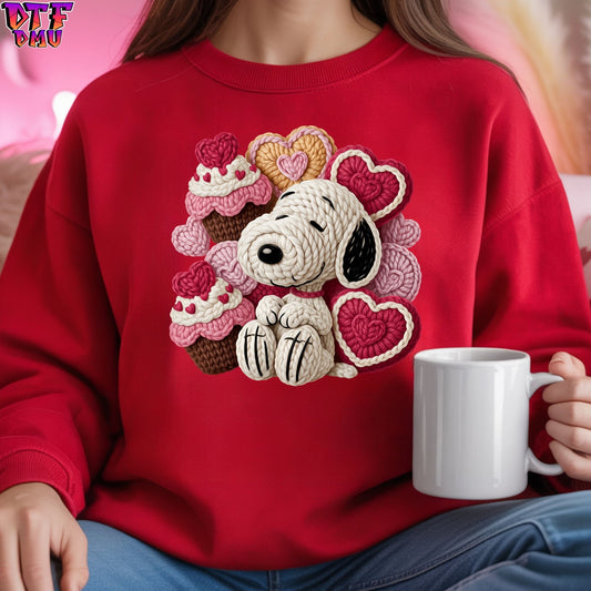 Snoopy Valentine's Day Faux Yarn/Crochet DTF Transfer Print Only.