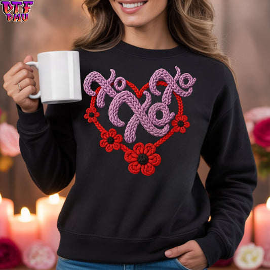 XOXO Valentine's Day Faux Yarn/Crochet DTF Transfer Print Only.