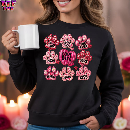 LOVE BITE PAWs Valentine's Day Faux Yarn/Crochet DTF Transfer Print Only.