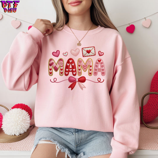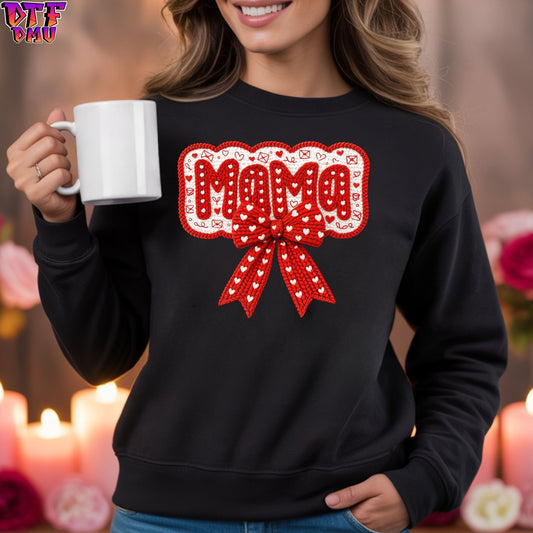 MAMA Valentine's Day Faux Yarn/Crochet DTF Transfer Print Only.