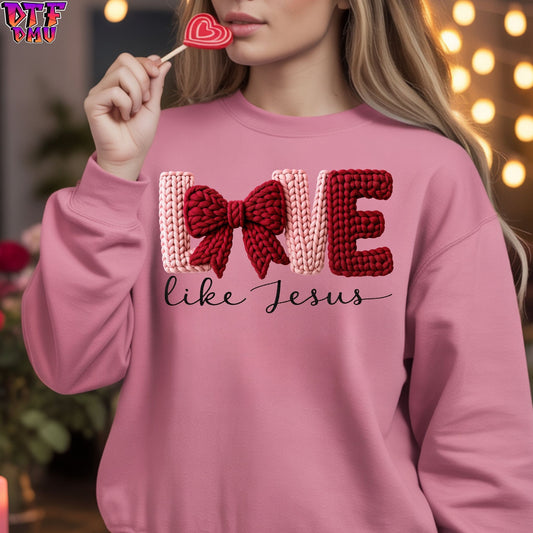 LOVE Like Jesus Valentine's Day Faux Yarn/Crochet DTF Transfer Print Only.