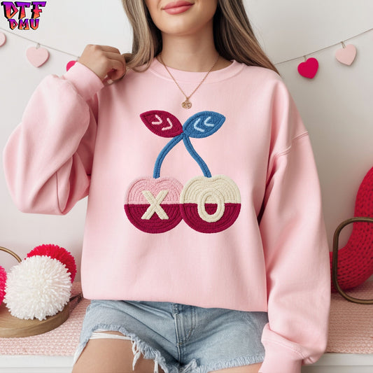 XO Cherry Valentine's Day Faux Yarn/Crochet DTF Transfer Print Only.
