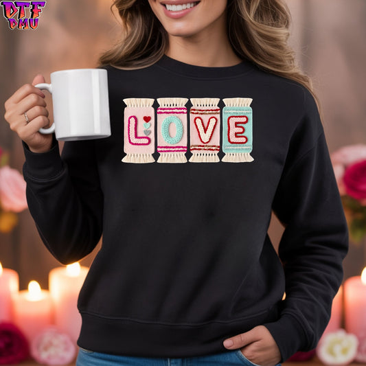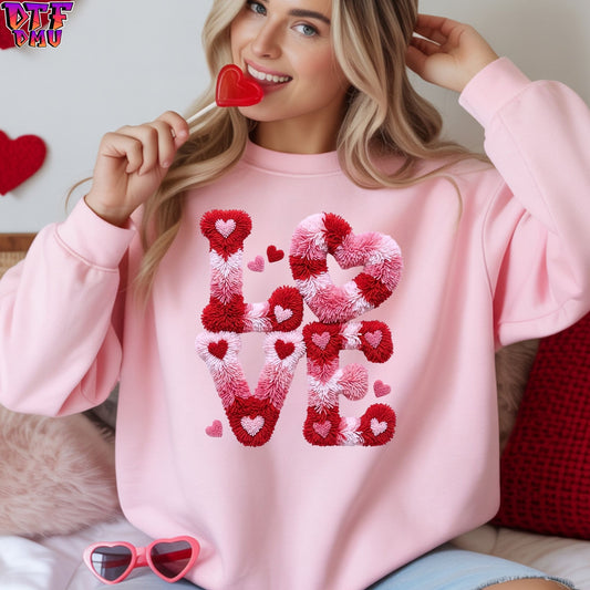 LOVE Valentine's Day Faux Yarn/Crochet DTF Transfer Print Only.