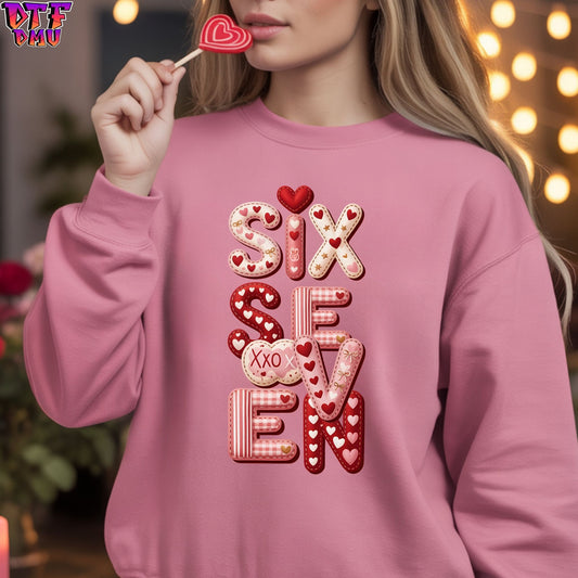SIX SEVEN Valentine's Day Faux Yarn/Crochet DTF Transfer Print Only.