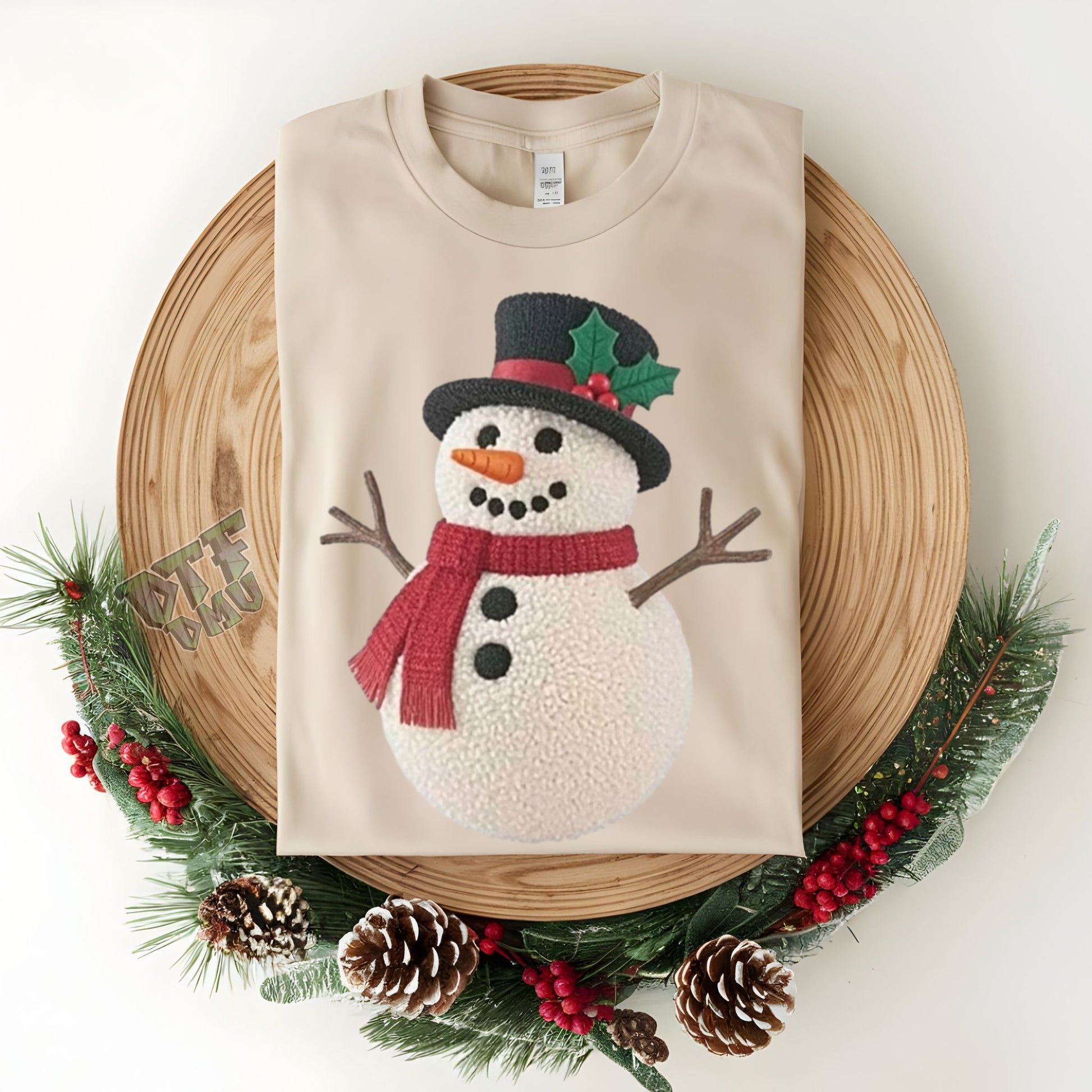 FAUX Yarn/Crochet Snowman Christmas DTF Transfer