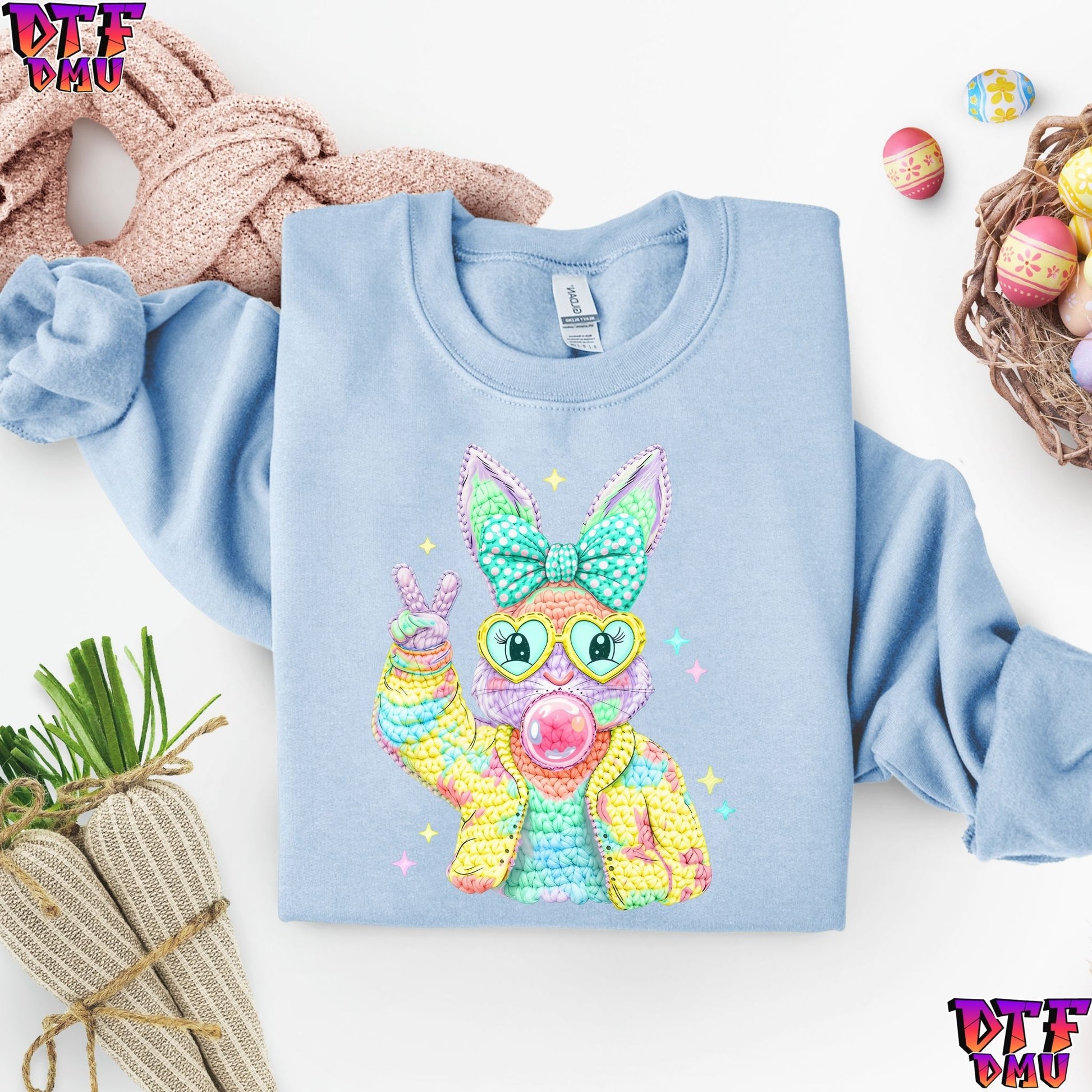 Easter Bunny Faux Yarn/Crochet DTF Transfer Print